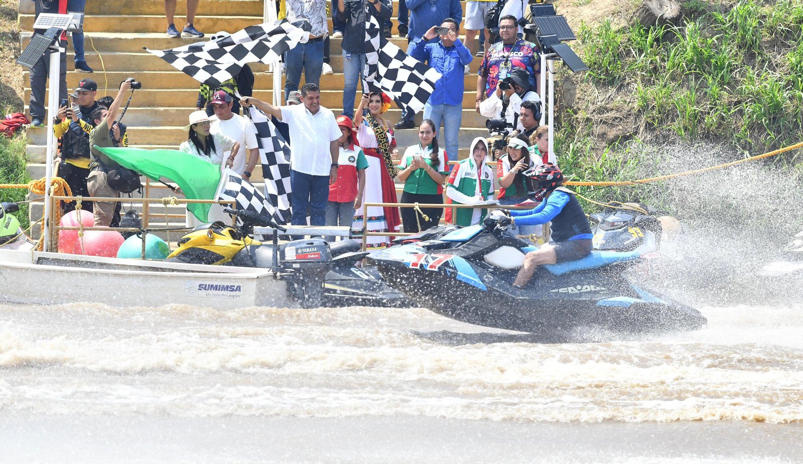 Desde el malecón Carlos A. Madrazo, donde dio el banderazo de salida para el heat 3 de la categoría Challenger, el mandatario destacó el potencial turístico y económico del estado, así como la importancia de diversificar actividades en torno a los ríos y lagunas de la región.