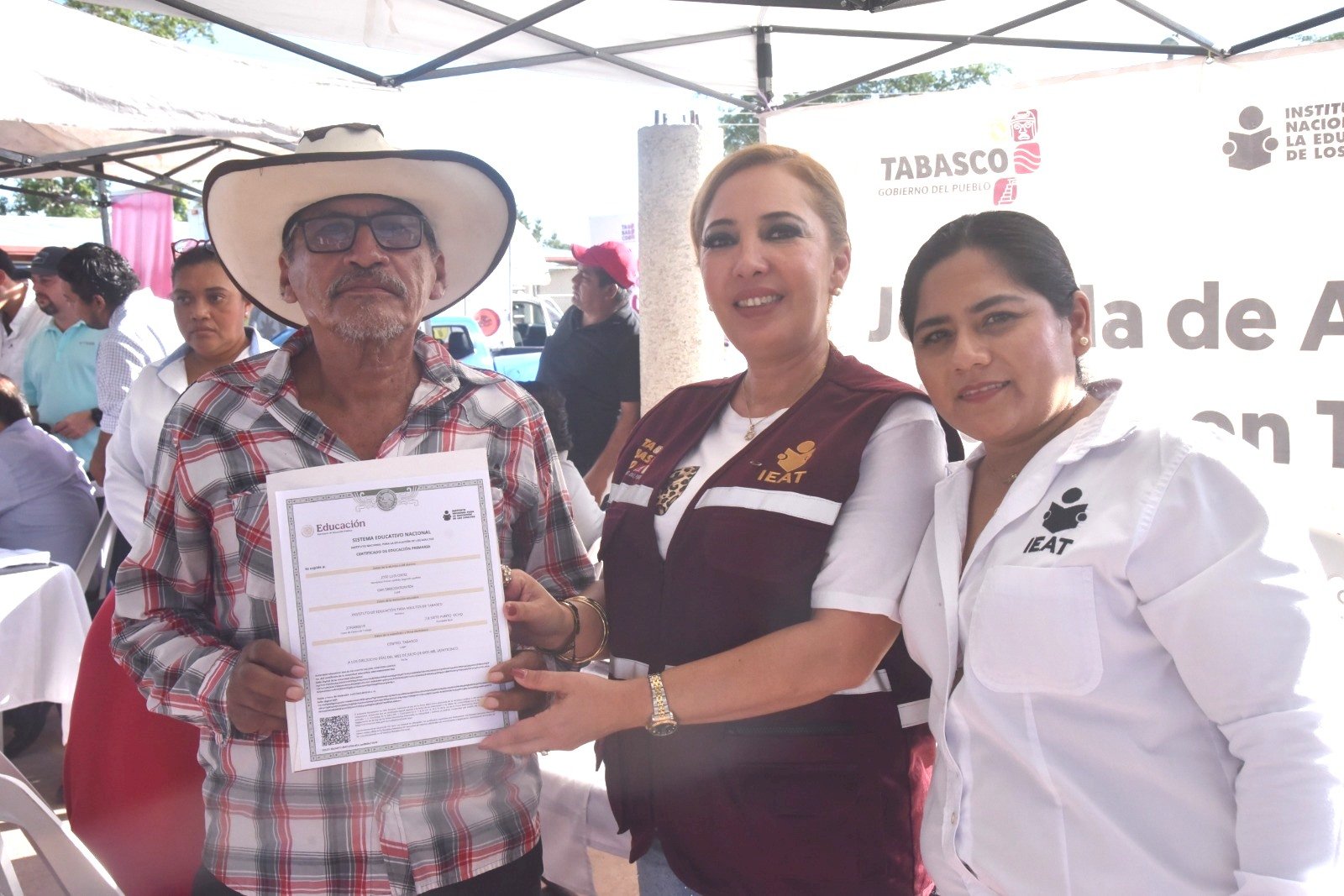 En una mesa colocada a un costado de la extensa área, una servidora del pueblo le preguntó a don José qué servicio iba a solicitar, y él, con la mejor sonrisa en su rostro, le dijo que venía a recoger su certificado de primaria. La joven se le quedó viendo y entonces le devolvió la sonrisa: “Ah, entonces va al IEAT (Instituto de Educación para Adultos de Tabasco), ¿verdad?”.