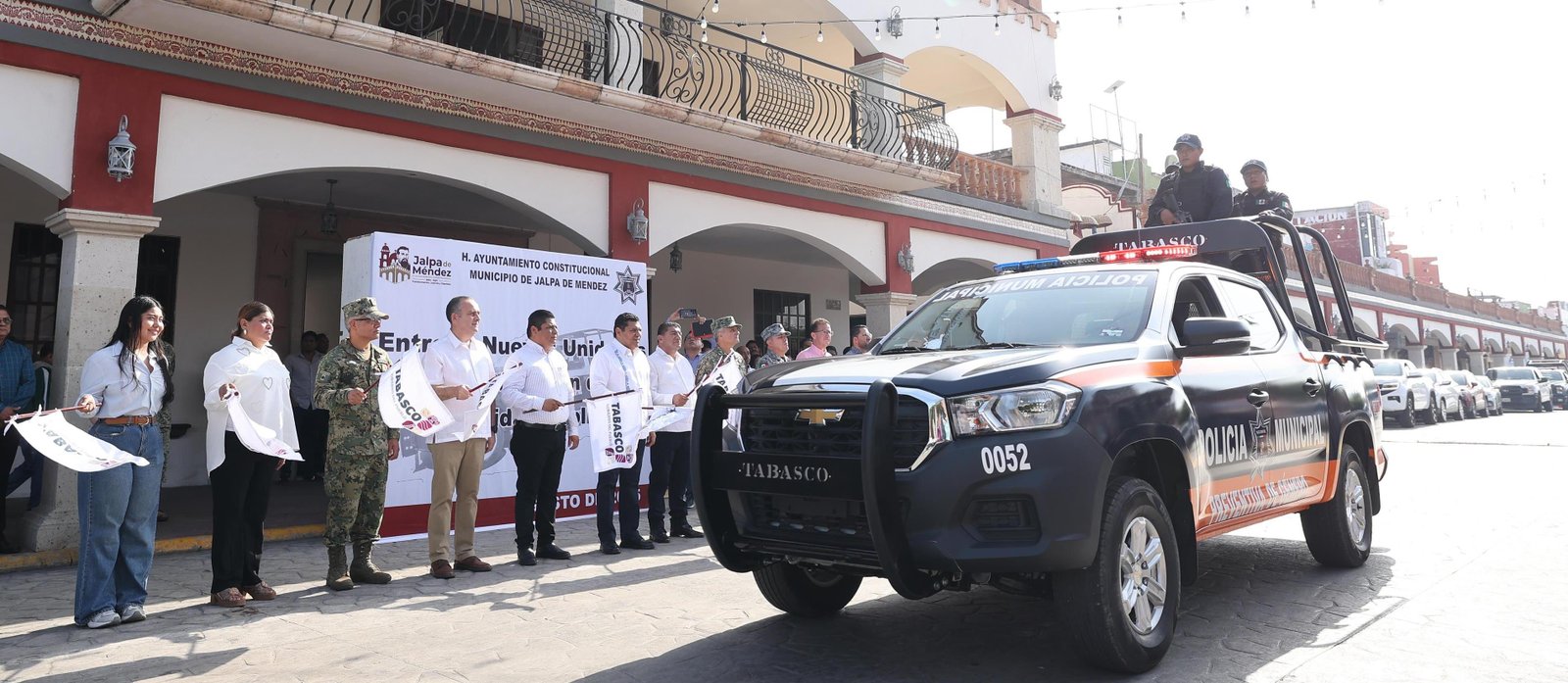 Tabasco registra avances en materia de seguridad, aseguró el gobernador Javier May Rodríguez, al encabezar en Jalpa de Méndez el banderazo de salida de nuevas patrullas y la entrega de uniformes y útiles escolares para hijas e hijos de elementos de la corporación policiaca.