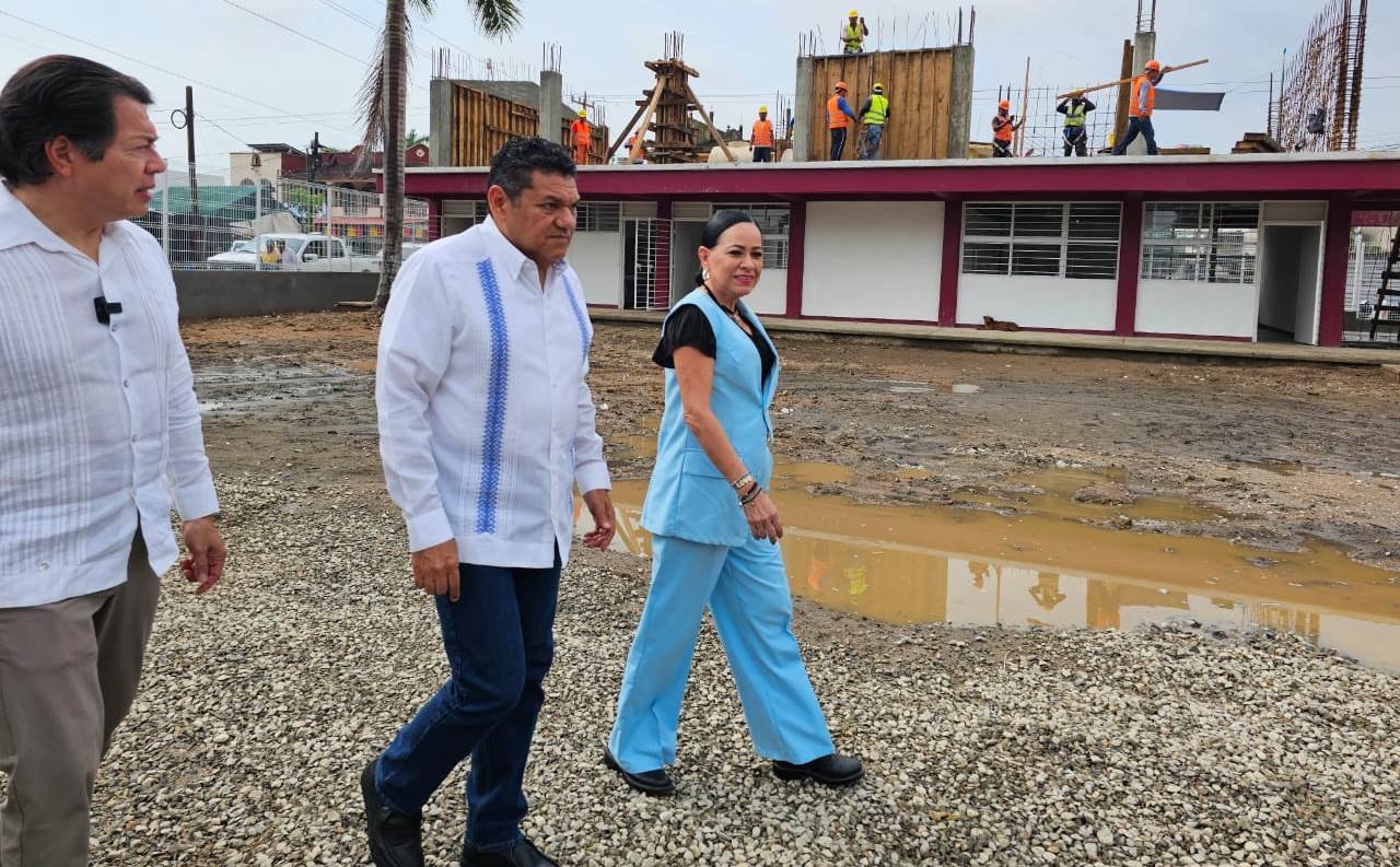 En Dos Montes, municipio de Centro, se supervisó la construcción de la primaria “Lic. Tomás Garrido Canabal”. La primera etapa, ya terminada, contó con una inversión de 5.3 millones de pesos en aulas y sanitarios. La segunda fase, que concluirá en noviembre, suma 8.4 millones para más aulas, dirección, sanitarios de maestros y barda perimetral. En total, la escuela tendrá una inversión de más de 13.8 millones de pesos y beneficiará a 228 alumnos y docentes.