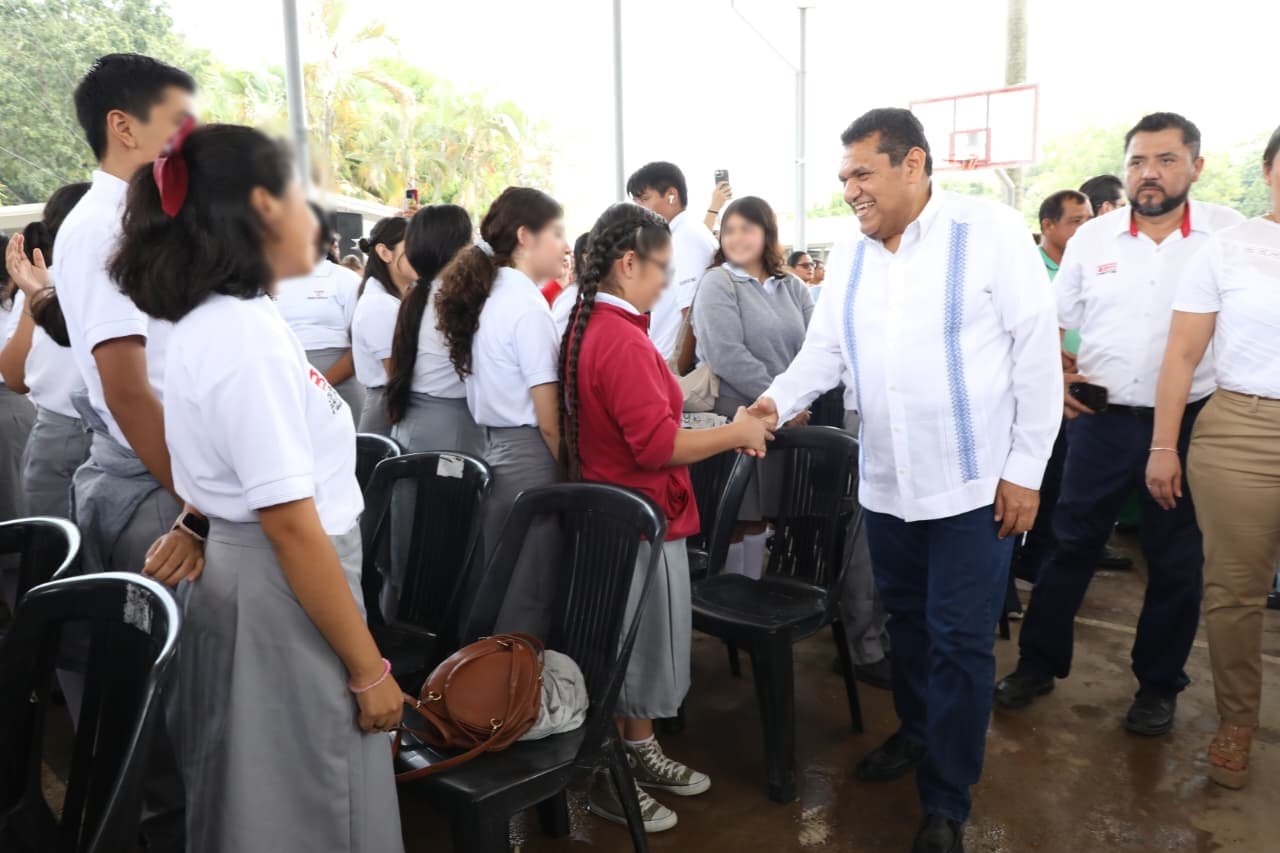 Los vítores, hurras y aplausos alcanzaron no solo al mandatario y al secretario federal, sino también al presidente de Nacajuca, Roberto Ocaña Leyva; a la secretaria de Educación, Patricia Iparrea Sánchez; al secretario de Obras Públicas y Ordenamiento Territorial, Daniel Casasús Ruz y, por supuesto, al bachiller Omar Javier Valencia Gómez, quien recibió elogios del secretario federal por su elocuente discurso, donde destacó la decisión del Gobierno del Pueblo “por invertir en nuestro futuro”.